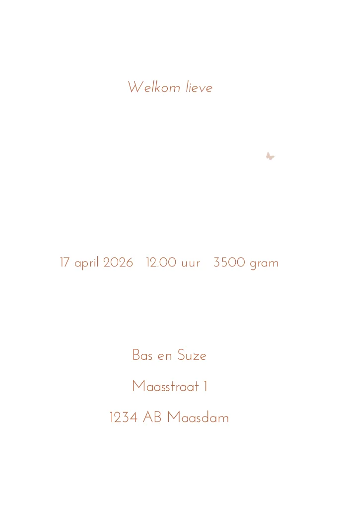 Dit minimalistische maar romantische geboortekaartje krijgt een extra luxe uitstraling door het gebruik van roségoudfolie. Super leuk voor de geboorte van jouw dochtertje!