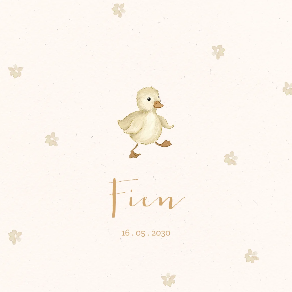 Schattig geboortekaartje meisje met eendje en droogbloemetjes