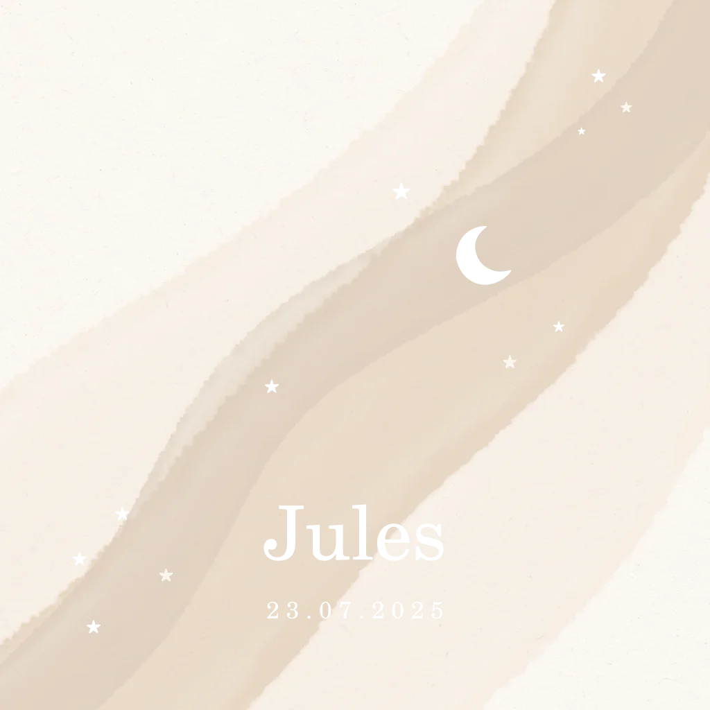 Stijlvol geboortekaartje beige sterren maan