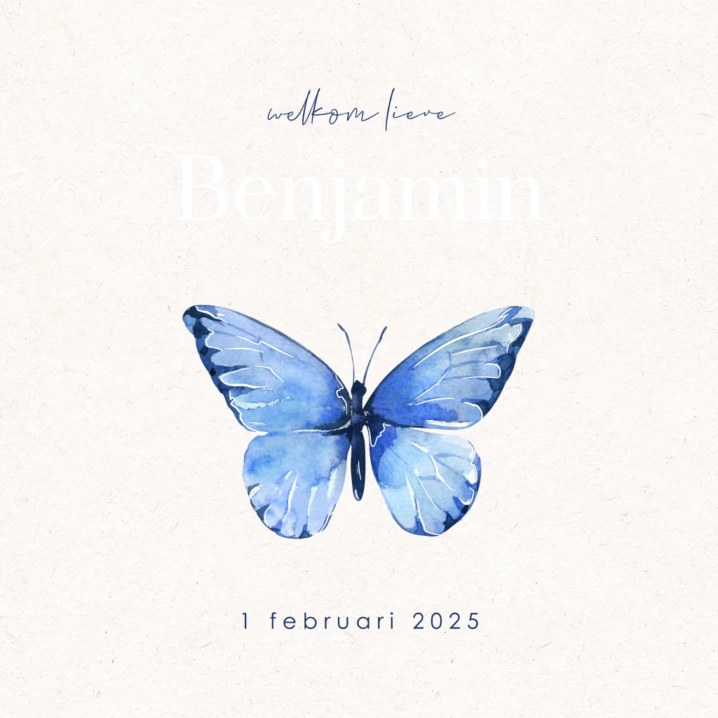 Wat een prachtig kaartje is dit! Speciaal voor jullie kleine man, ontwierpen wij dit geboortekaartje met aquarel vlinder. Het gebruik van de lijnen op de vlinder folie maken dit kaartje uniek.