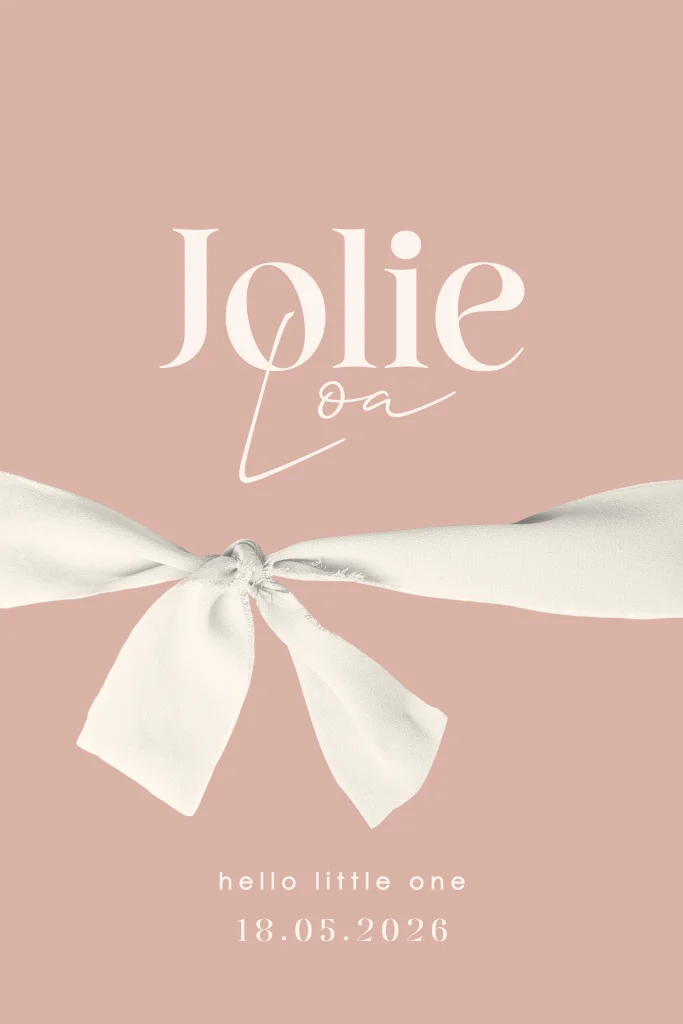 Goed om te weten: het zijden lint wordt niet standaard meegeleverd, dit kun je zelf toevoegen tijdens het bestelproces. Je vindt alle bevestigingsmaterialen hier. Wanneer je de geboortekaartjes ontvangt, kun je het lint er zelf omheen strikken.
