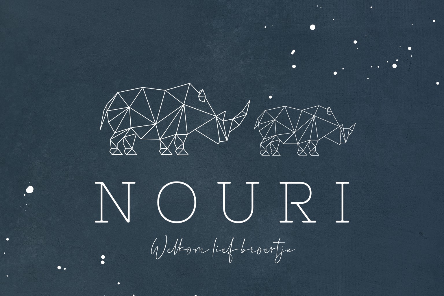 Wat een stoer geboortekaartje is dit, helemaal leuk voor een broertje op komst! Het geboortekaartje heeft een geometrische neushoorntjes, dit combineren we met goudfolie.