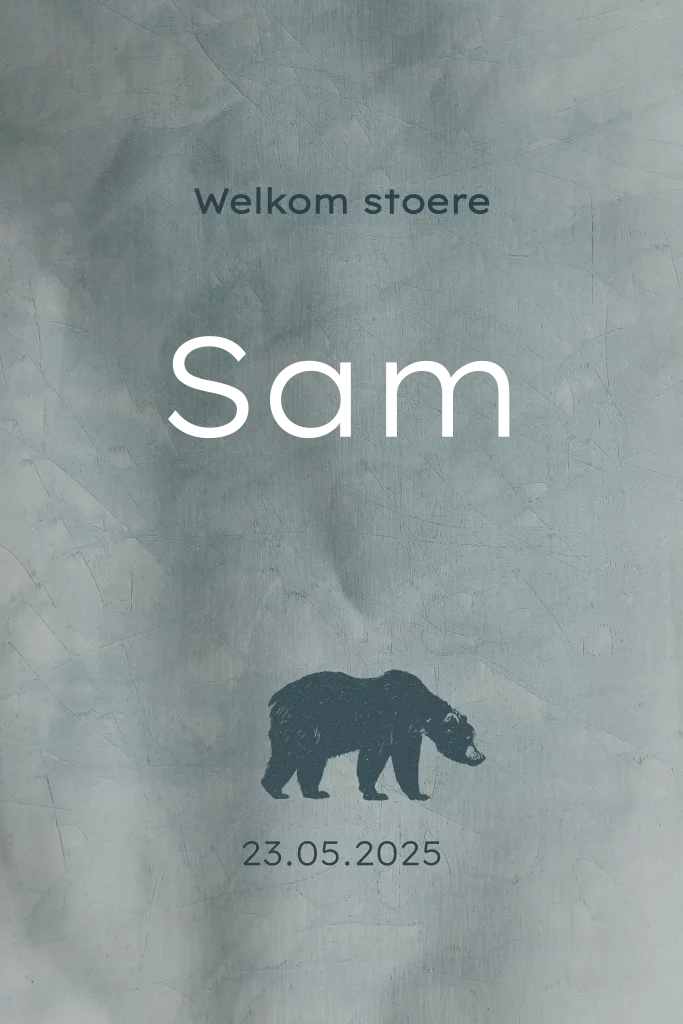 Kies voor jullie kleintje een sttoer geboortekaartje met foliedruk en een beertje. Liever een andere kleur folie of een ander diertje? Dit pas je gemakkelijk zelf aan in de editor!