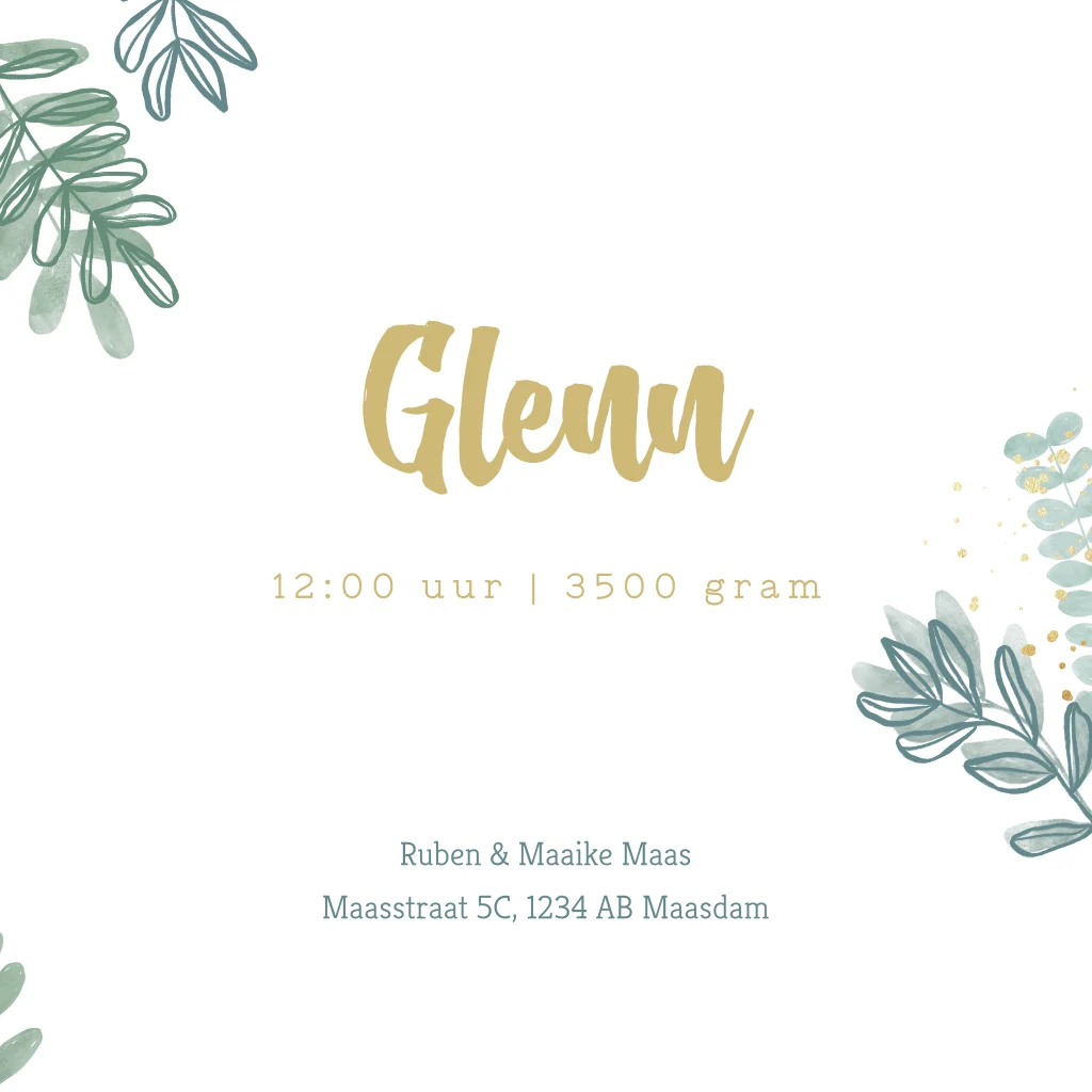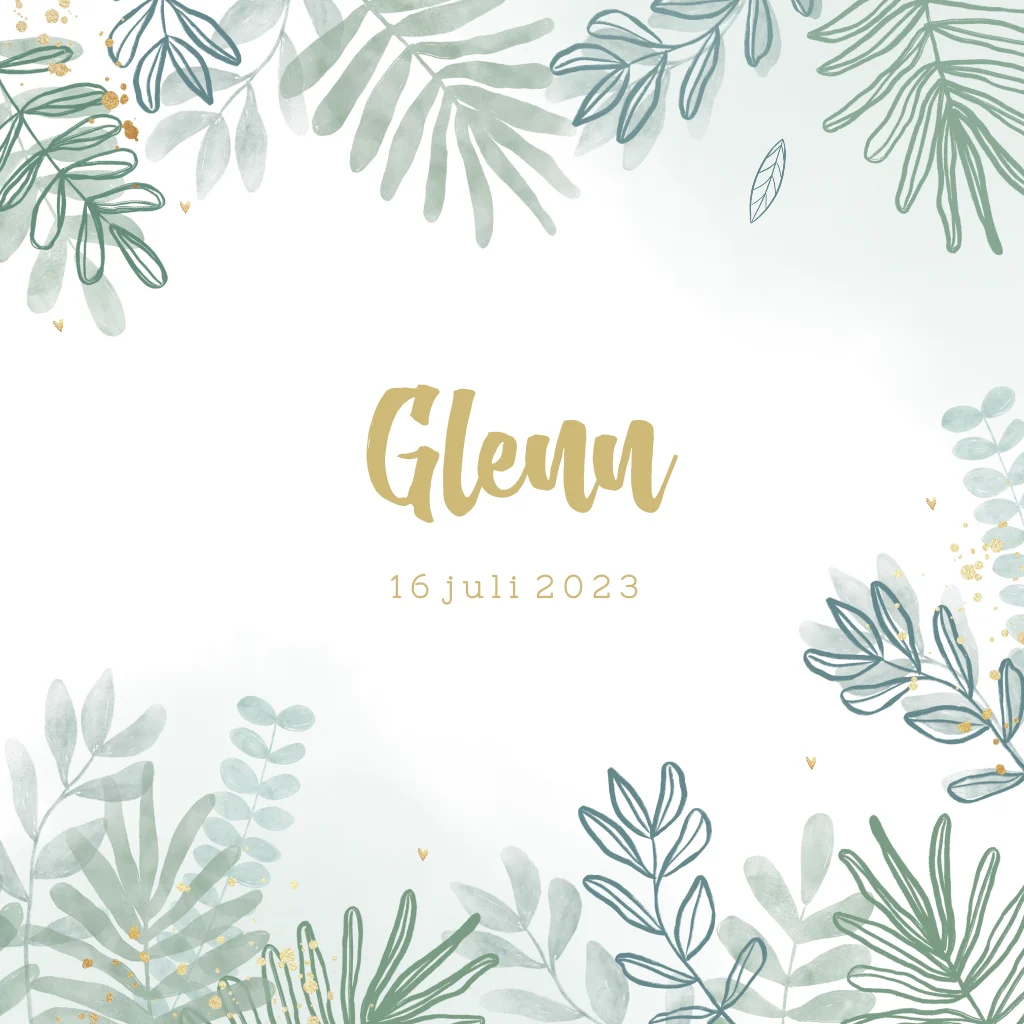Wat een stoer kaartje is dit! Speciaal voor jullie kleine bink, ontwierpen wij dit geboortekaartje. De getekende bladeren en spetters maken dit kaartje echt bijzonder.