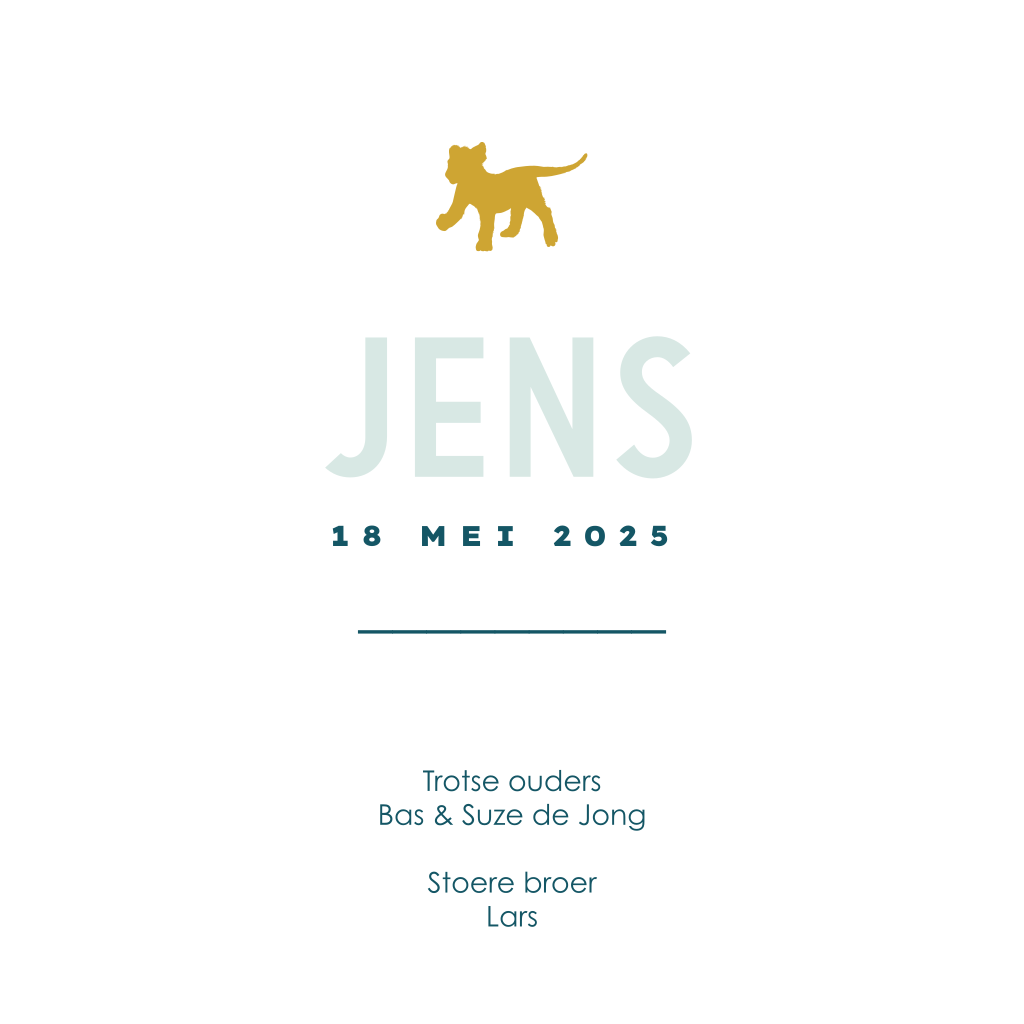 Wat een stoer kaartje is dit! Speciaal voor jullie kleine vent, ontwierpen wij dit geboortekaartje. Het welpje in goudfolie maakt dit kaartje extra bijzonder.