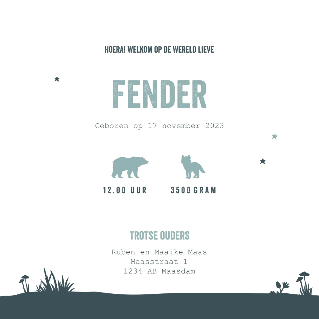 Een avontuurlijk en stoer geboortekaartje jongen in herfst thema. Maak het kaartje helemaal eigen door het toevoegen van bijvoorbeeld illustraties uit de beeldbank.