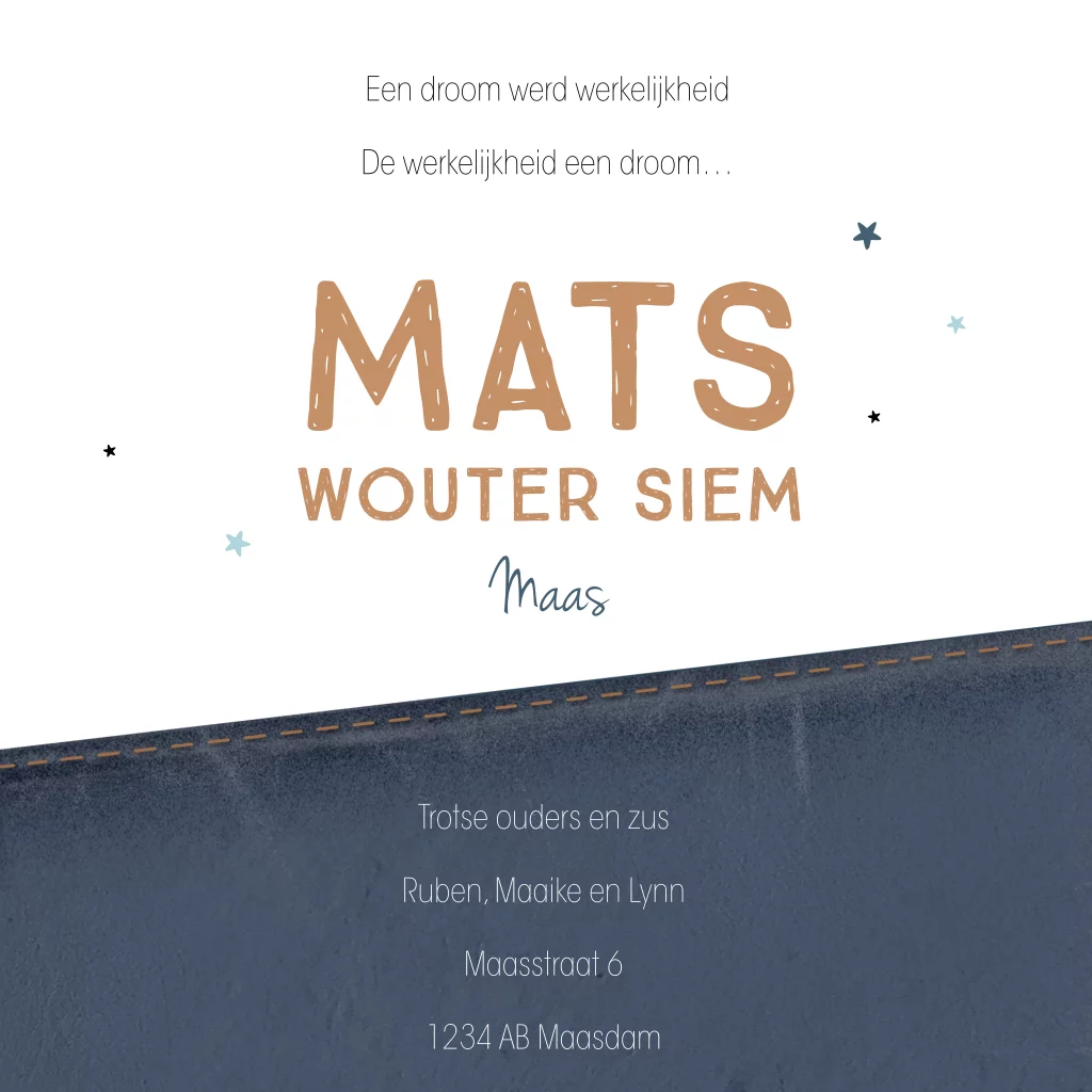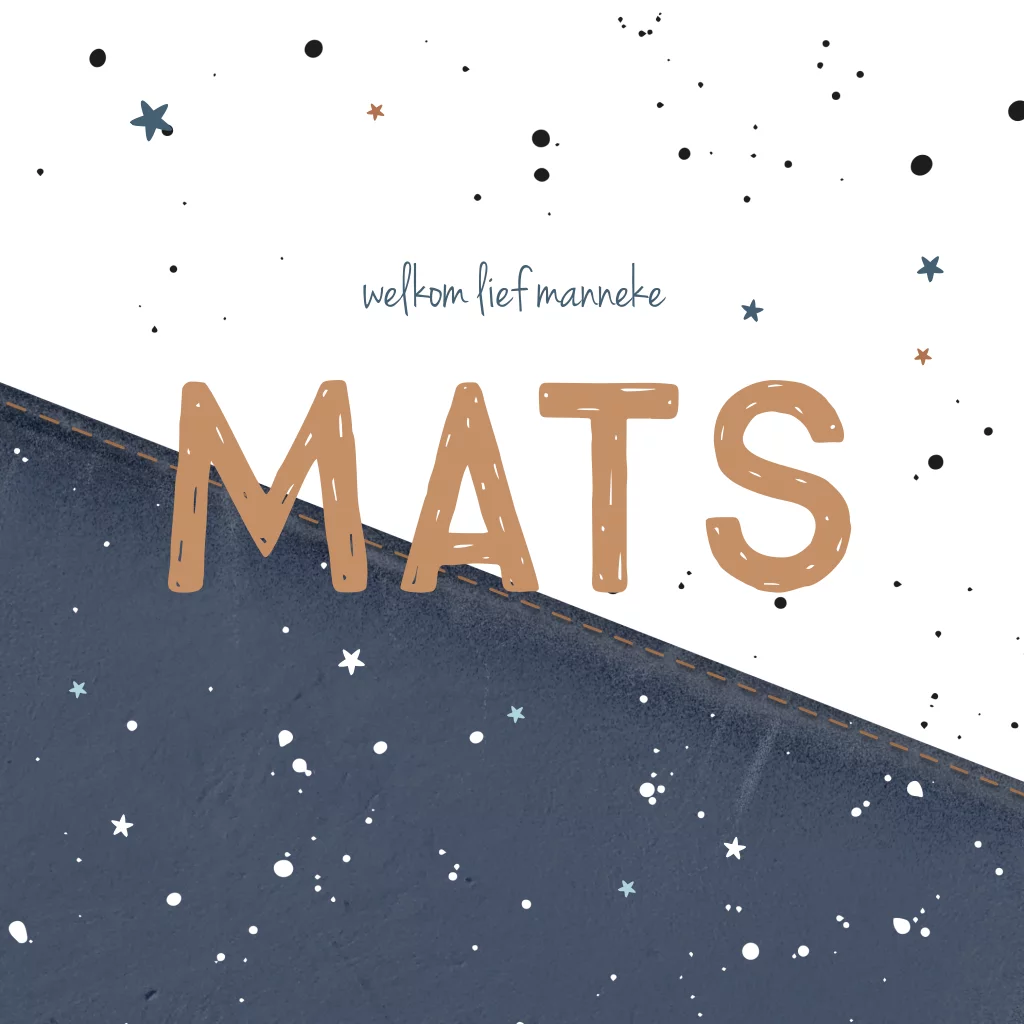 Een super stoer geboortekaartje zoon met spetters, sterren en leuke typografie. Maak je kaartje uniek door lettertypes en kleuren te bewerken in de editor.