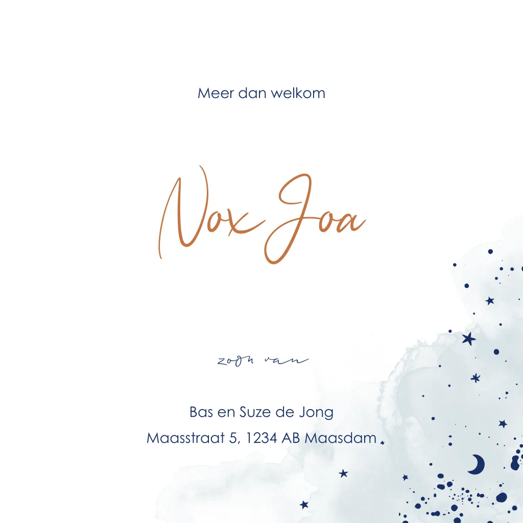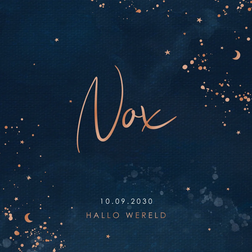 Oh, wat worden wij blij van dit geboortekaartje… De donkere achtergrond maken dat dit onwijs geschikt is voor een klein mannetje. Pas lettertype of elementen gemakkelijk zelf aan in de editor of geef nog meer elementen een hoogglans look.