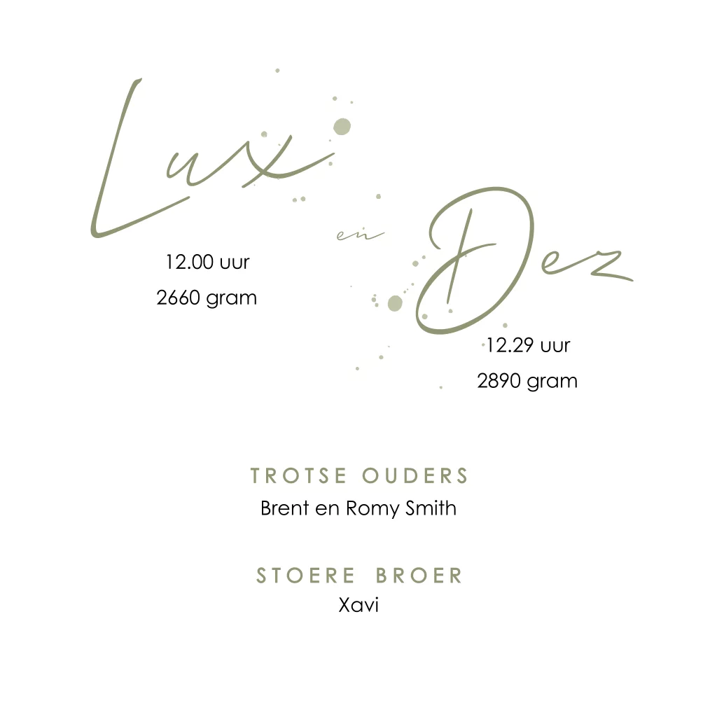 Hoe kondig jij de geboorte van de tweeling aan?  Vraag het geboortekaartje ook als geboortebord aan en show het ontwerp aan de hele buurt!
