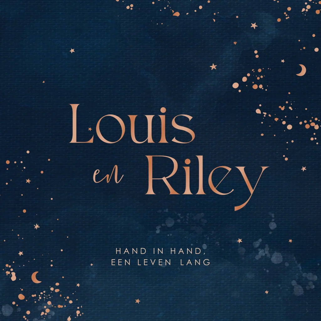 Oh, wat worden wij blij van dit geboortekaartje… De donkere achtergrond geeft een stoere uitstraling en de hoogglans details geven een luxe finish. Pas lettertype of elementen gemakkelijk zelf aan in de editor of geef nog meer elementen een hoogglans look.