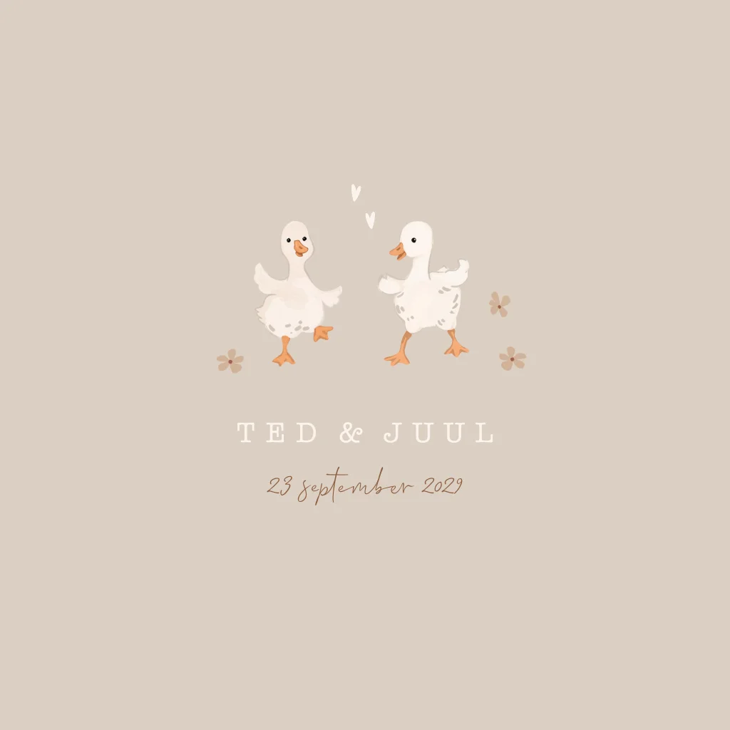 Wat een lief kaartje is dit voor jullie tweeling! Prachtig in nude tinten met 2 gansjes en bloemetjes.