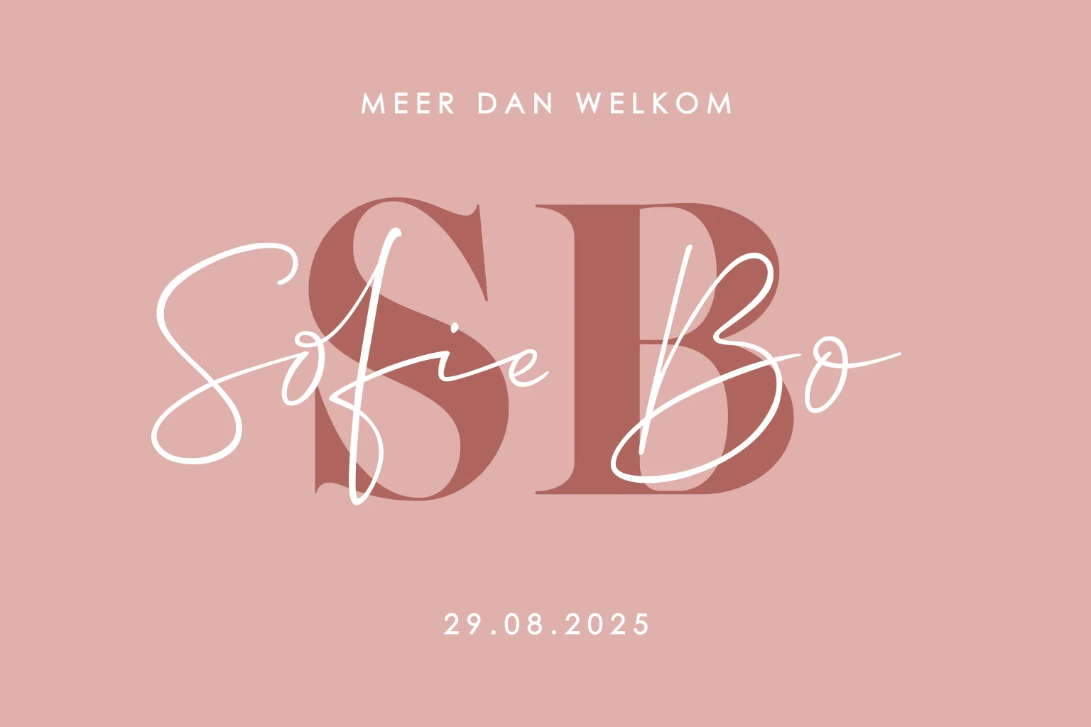 Een prachtig geboortekaartje voor een meisje met initialen en sierletters. Zo stijlvol! Wij hebben gekozen voor roze tinten, liever andere kleuren? Dit kun je heel gemakkelijk zelf aanpassen!