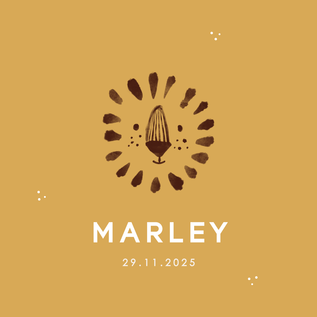 Wat een vrolijk kaartje is dit voor jullie kleine man! Prachtig in okergele tinten en goudfolie elementen. Liever andere kleuren? Dit pas je gemakkelijk zelf aan in onze editor.