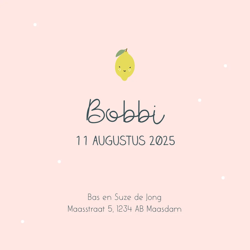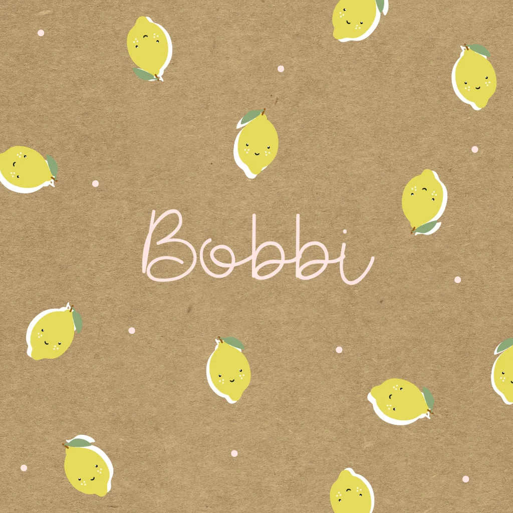 Vrolijk geboortekaartje meisje met citroentjes en kraft look