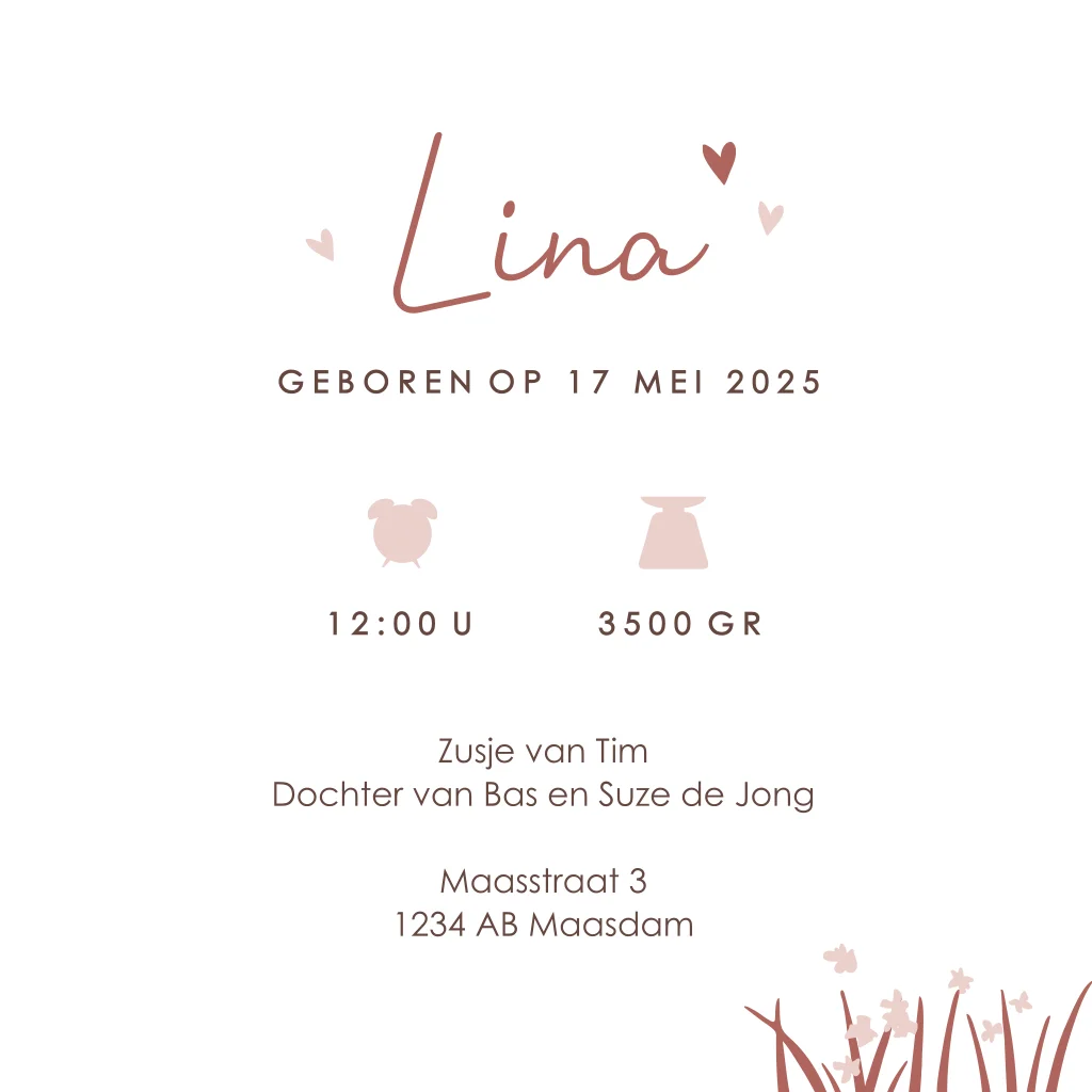 Helemaal weg van dit ontwerp? Vraag het geboortekaartje ook als geboortebord aan en show het ontwerp aan de hele buurt!