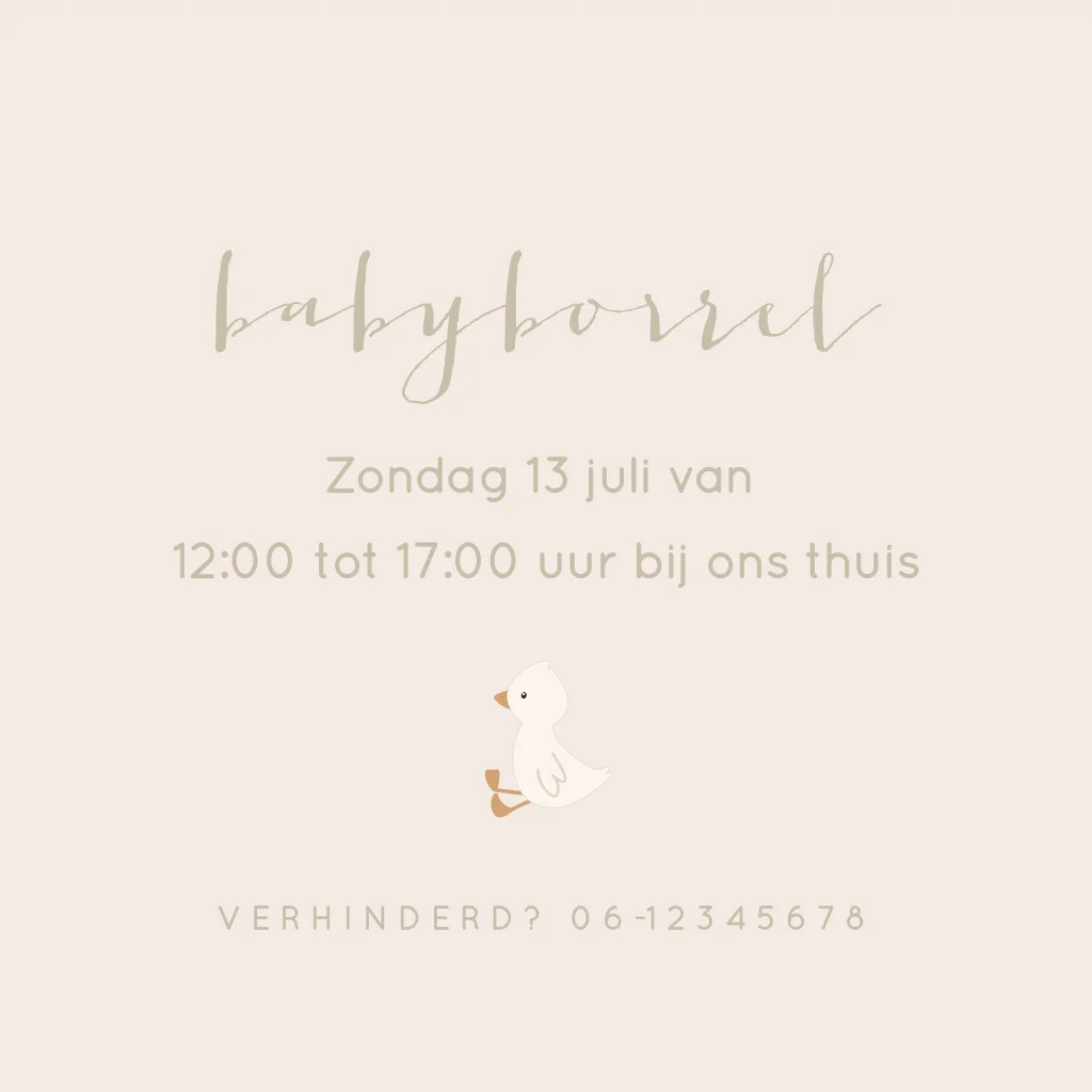 Voeg dit kleine kaartje met eendje toe aan het geboortekaartje van jullie kindje als uitnodiging voor een kraamborrel. Let op: maak de tekst niet te klein!