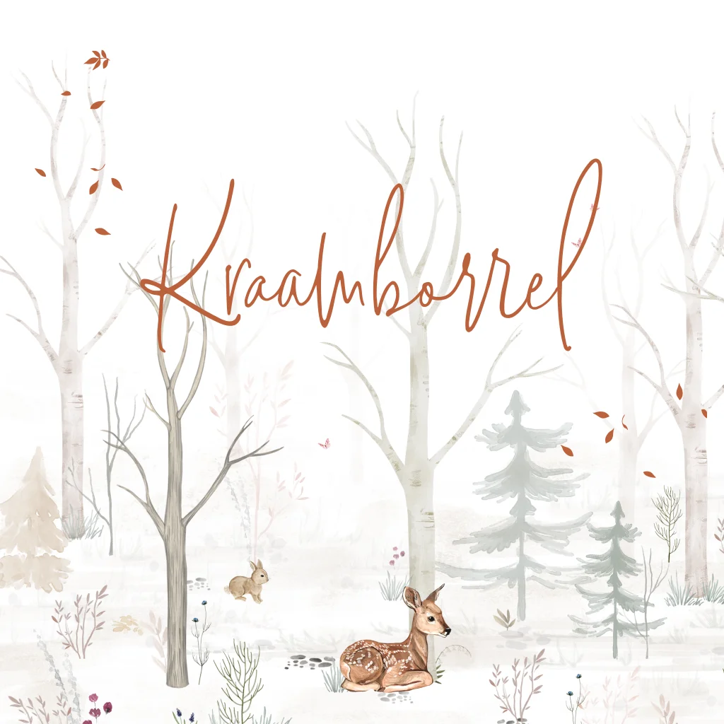 Voeg dit kleine kaartje met bosthema toe aan het geboortekaartje van jullie kindje als uitnodiging voor een kraamborrel.