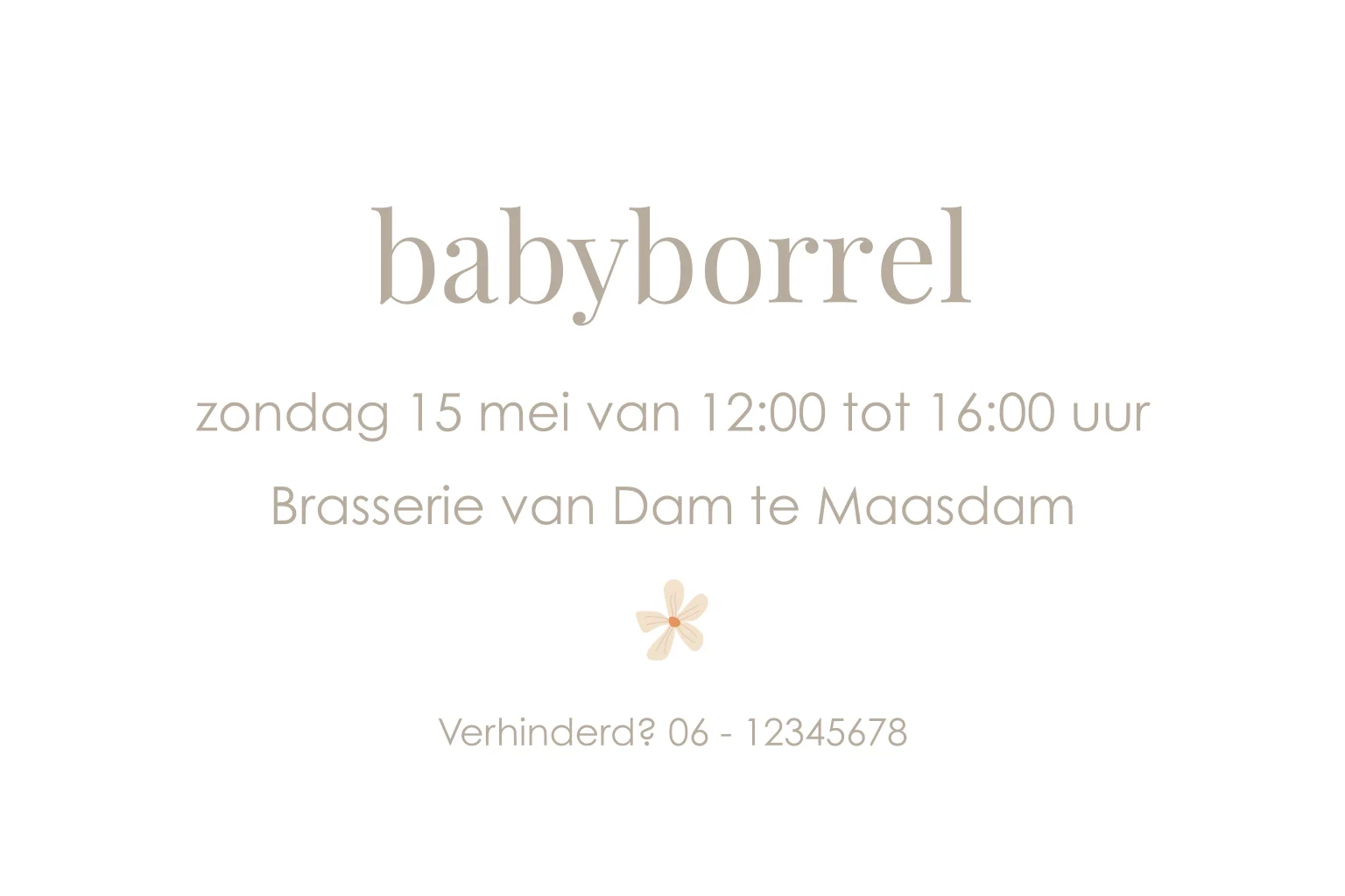 Voeg dit prachtige kaartje toe aan het geboortekaartje van jullie kindje als uitnodiging voor een kraamborrel.
