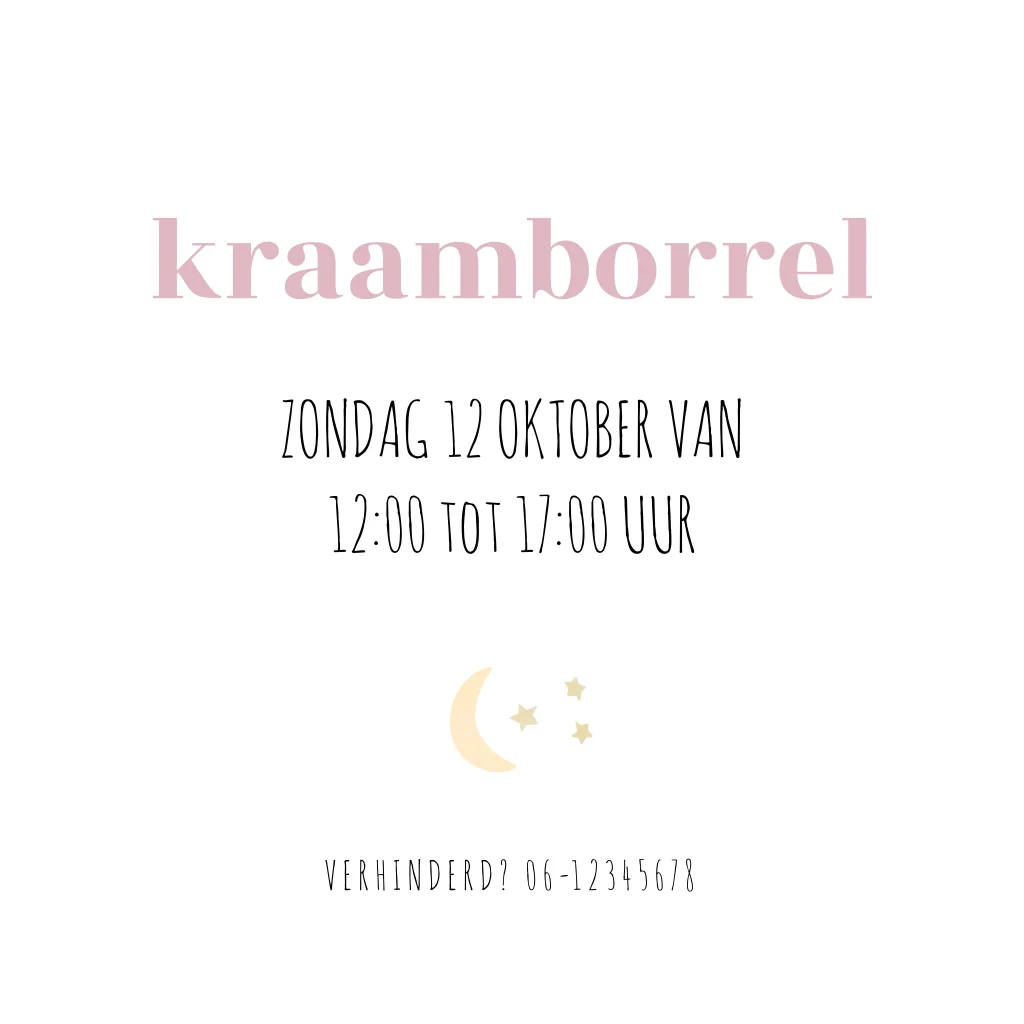 Voeg dit kleine kaartje met ronde hoeken en schattig maantje toe aan het geboortekaartje van je kindje als uitnodiging voor een kraamborrel.
