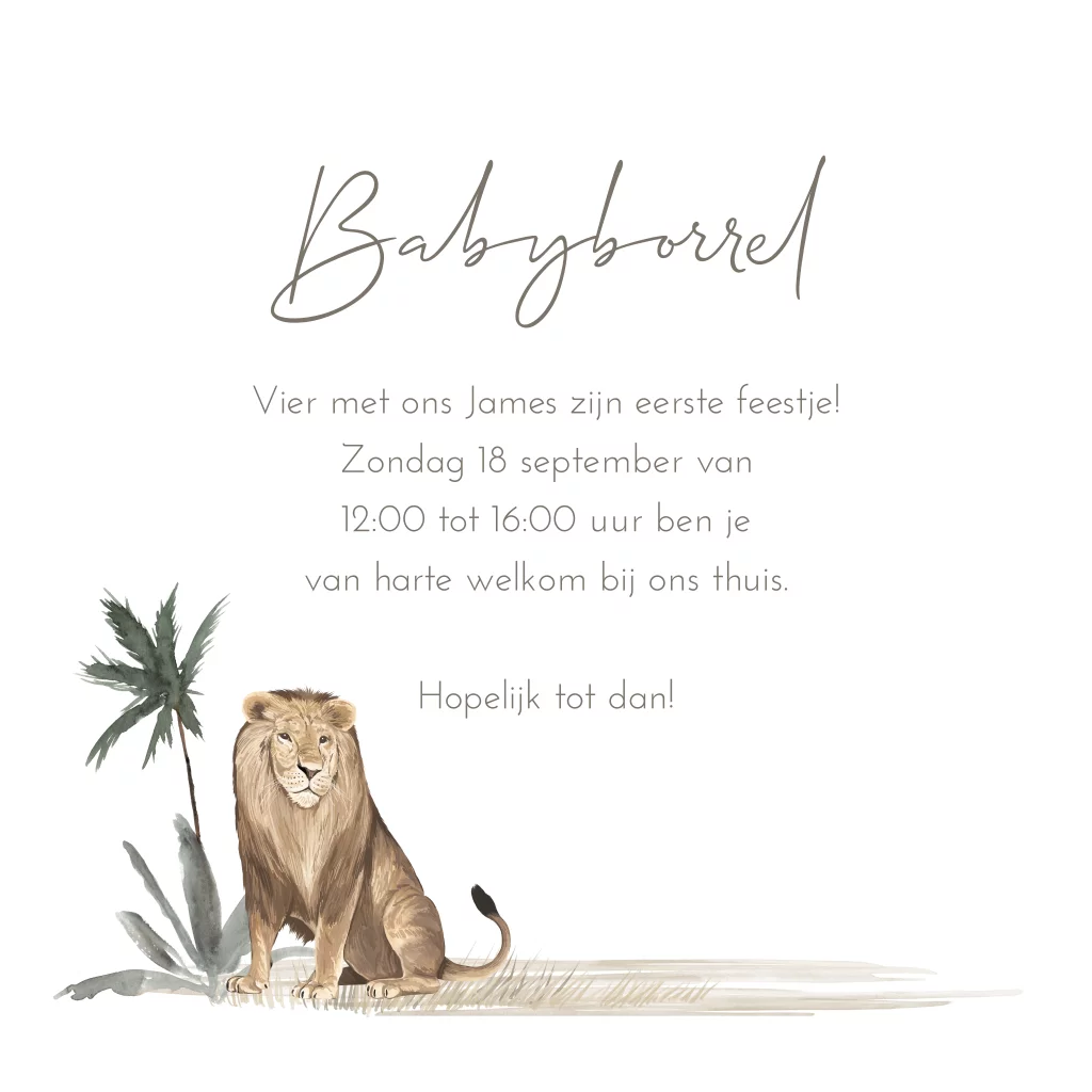 Voeg dit kleine kaartje met leeuw toe aan het geboortekaartje van jullie kindje als uitnodiging voor een kraamborrel.