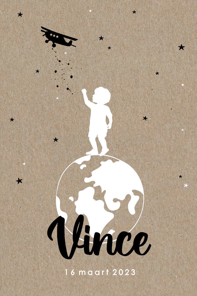 Geboortekaartje jongen echt kraft wereldbol