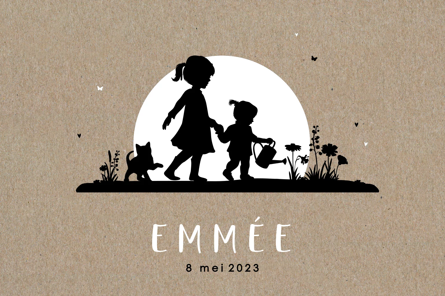 Geboortekaartje met silhouet meisjes voor een derde kindje