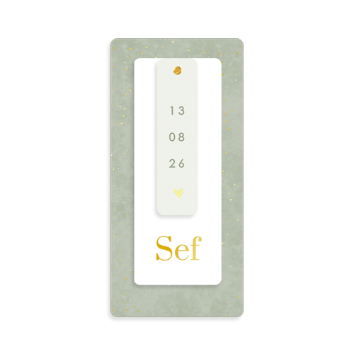 Geboortekaartje met labels en goudfolie