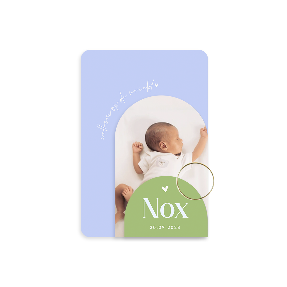 Goed om te weten: deze kaart wordt exclusief paperclip geleverd. Bestel het bevestigingsmateriaal voor je labelkaart hier en voeg toe aan je mandje. Wanneer je de geboortekaartjes ontvangt, verbind je deze zelf aan elkaar.
