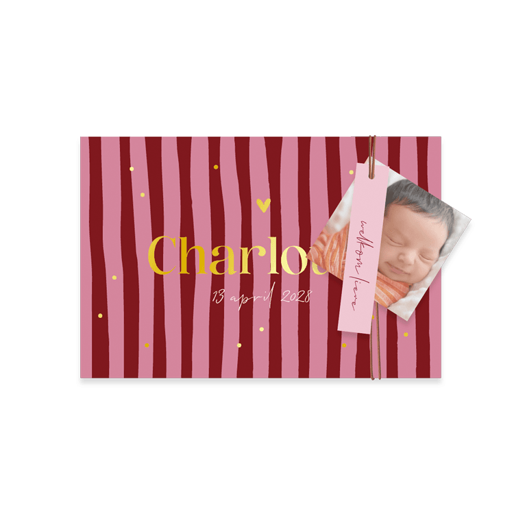 Dit geboortekaartje maakt deel uit van een complete set in deze stijl.