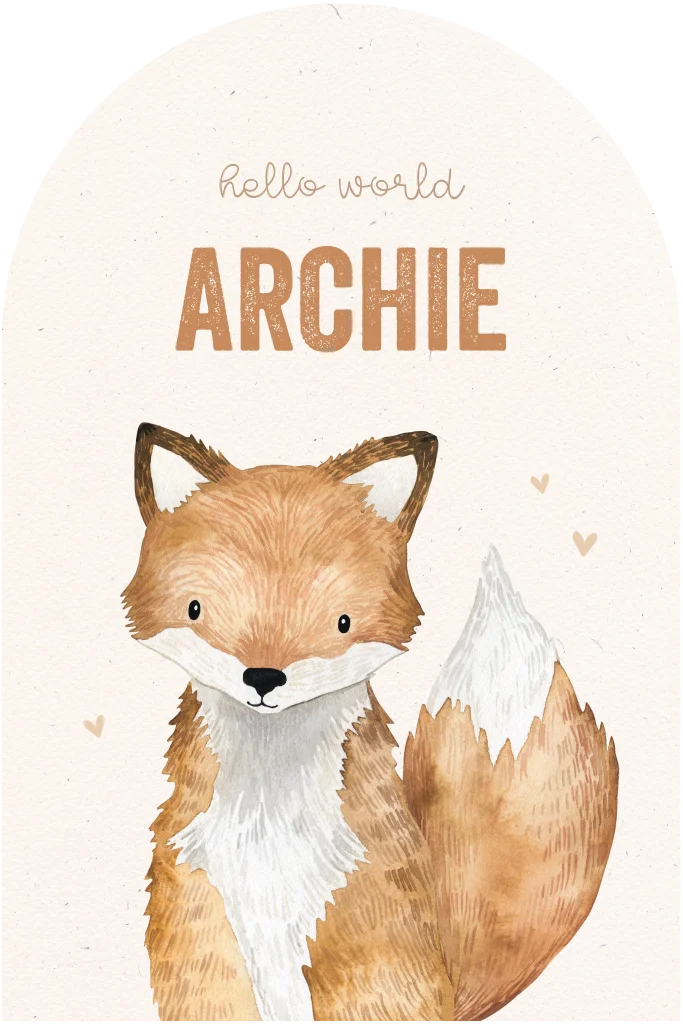 Oh, wat worden wij blij van dit geboortekaartje! Het schattige vosje met de zachte achtergrond maken dat dit kaartje onwijs geschikt is voor een lief klein meisje of mannetje. Pas het lettertype of elementen gemakkelijk zelf aan in de editor.