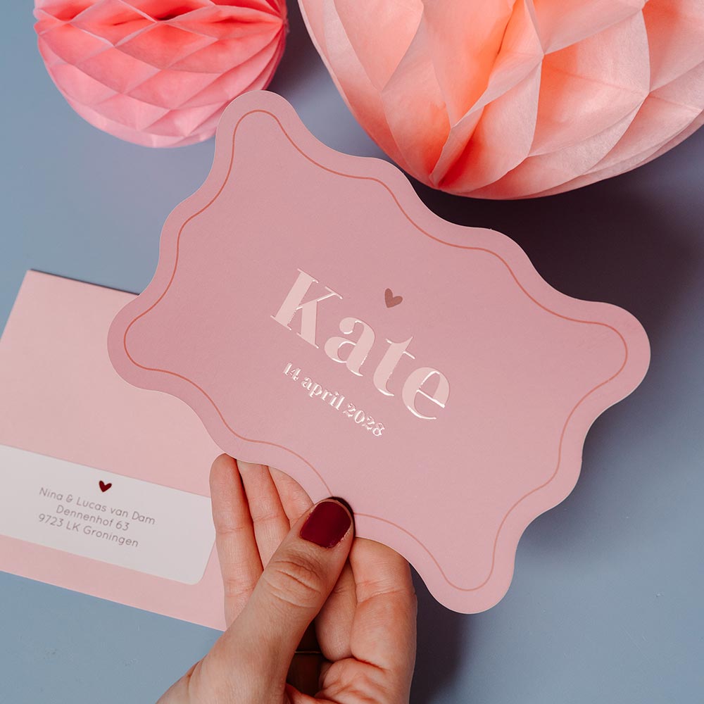 Goed om te weten: dit design bevat een kader. Omdat de kaarten na het drukken op een groot vel pas worden uitgesneden op het juiste formaat, kan het zijn dat het kader íetsje smaller of breder uitvalt. Dit gaat slechts om een paar millimeter, maar we willen het wel graag vermelden.