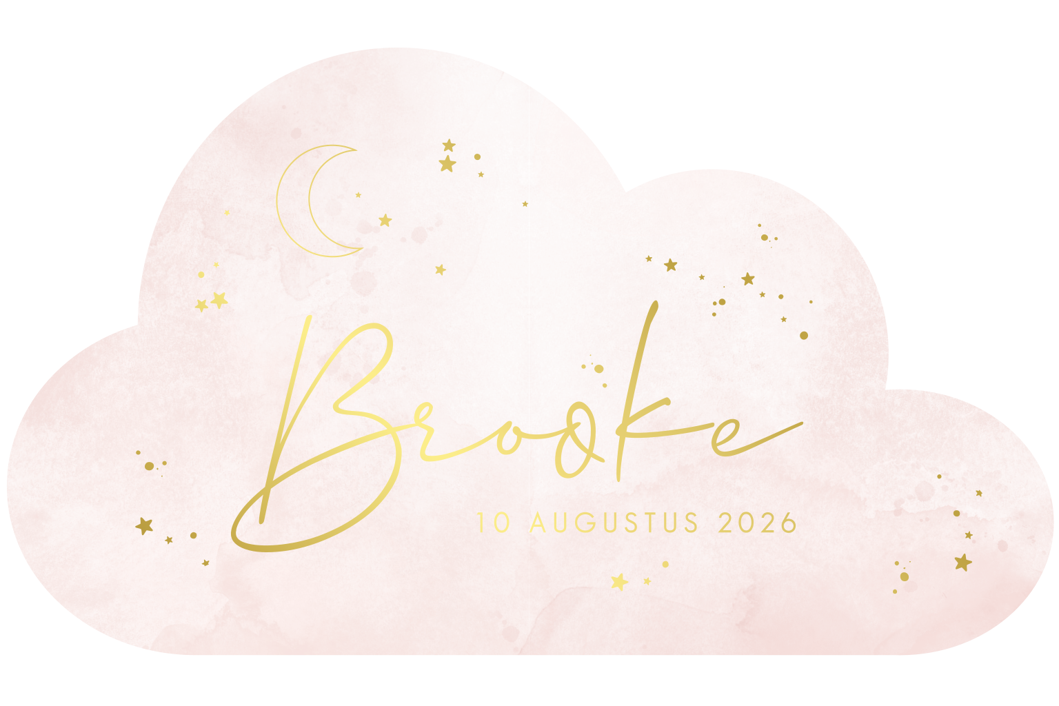 Wat een lief geboortekaartje is dit. Het geboortekaartje heeft een mooie wolk vorm, dit combineren we met goudfolie. Echt een verrassing voor de ontvangers!