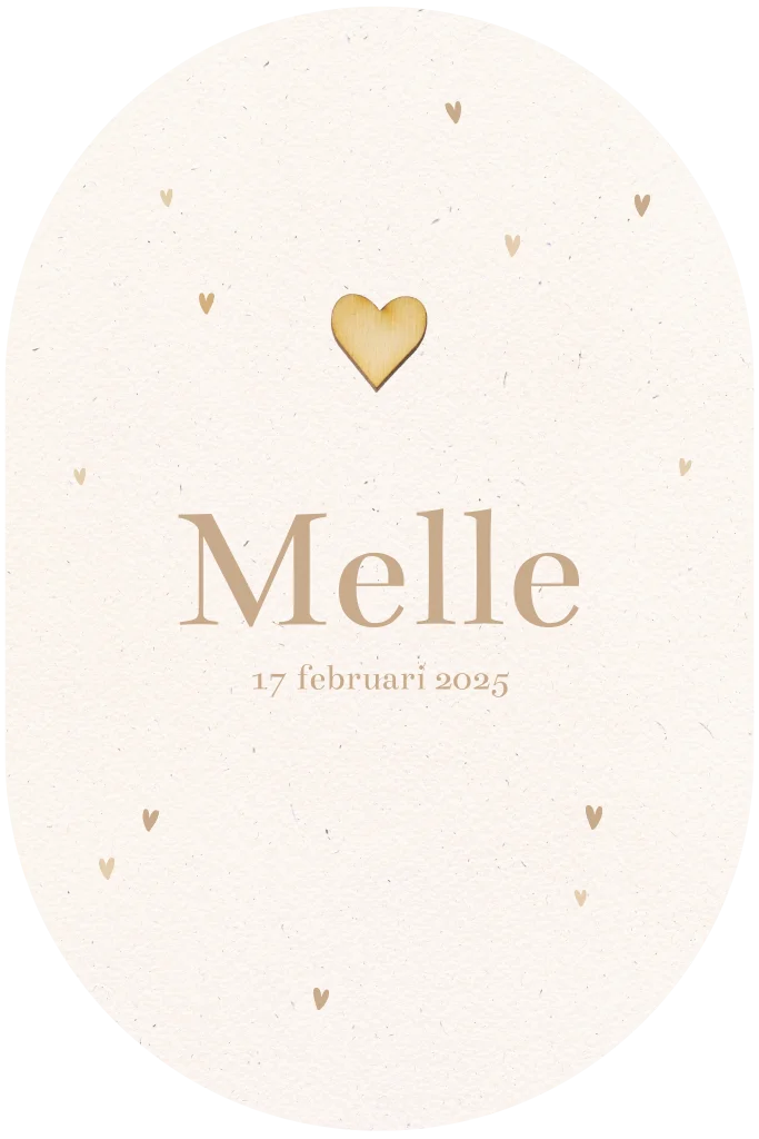 Goed om te weten: de houten hartjes worden niet standaard meegeleverd, deze kun je zelf toevoegen tijdens het bestelproces. Je vindt alle houten elementjes hier. Wanneer je de geboortekaartjes ontvangt, kun je de houten hartjes er zelf opplakken.