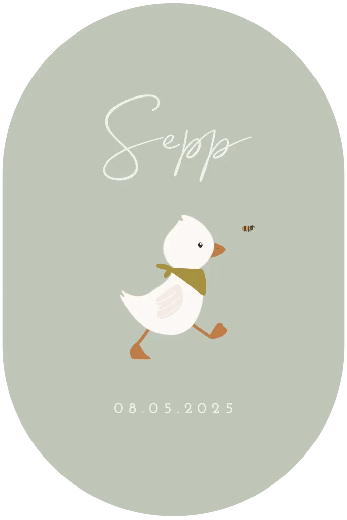 Bij de geboorte van jullie kleintje, hoort een speciaal geboortekaartje. Wat dacht je van dit ovale kaartje met eendje? Pas het ontwerp naar wens aan in de online editor