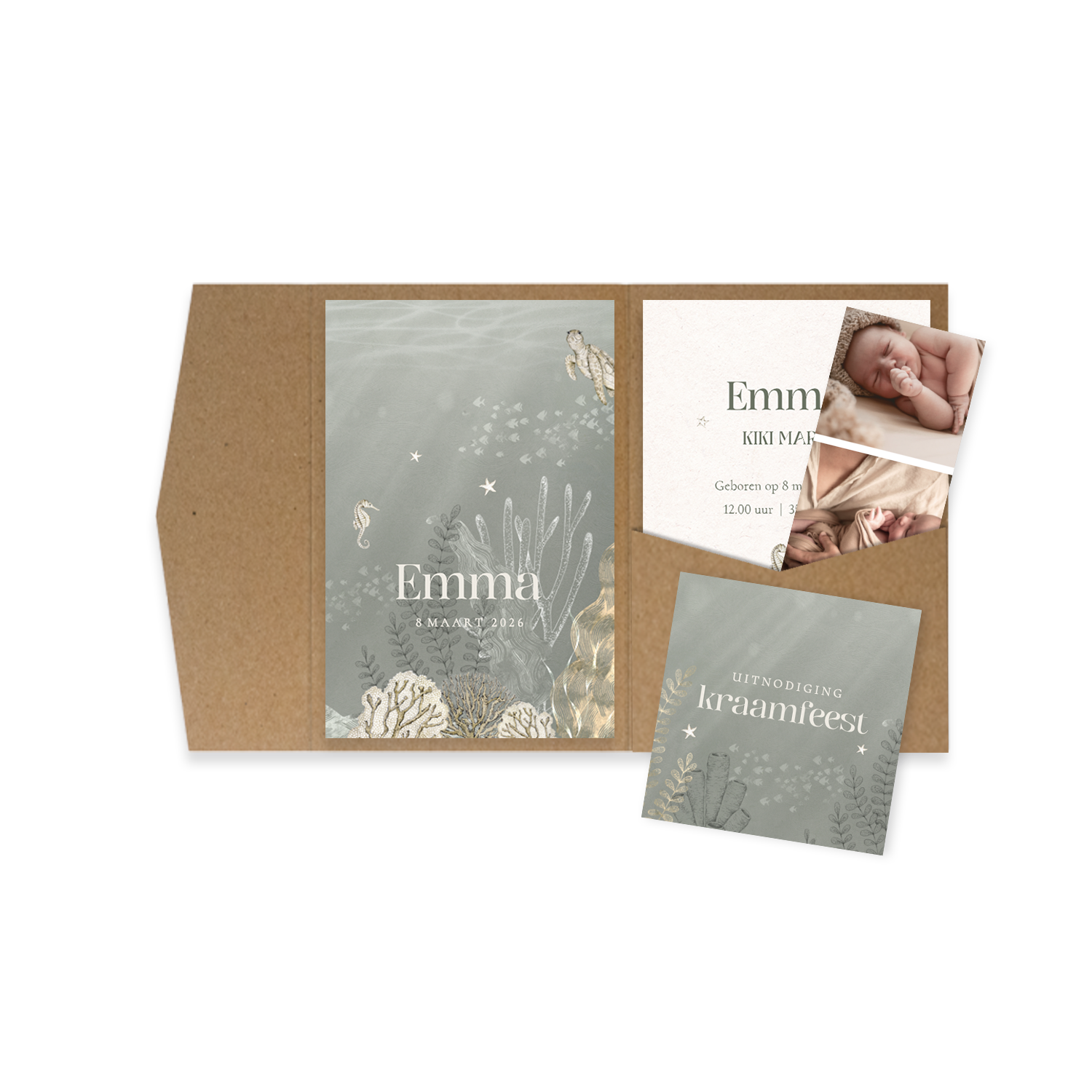 Dit geboortekaartje maakt deel uit van een complete set in deze stijl.