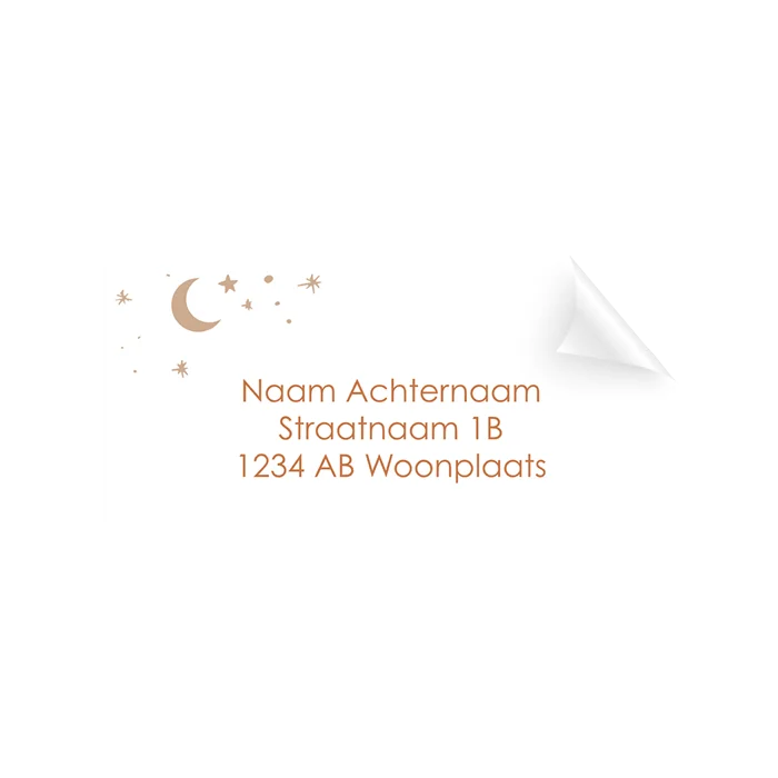 Adressticker geboortekaartje met maantje en sterren
