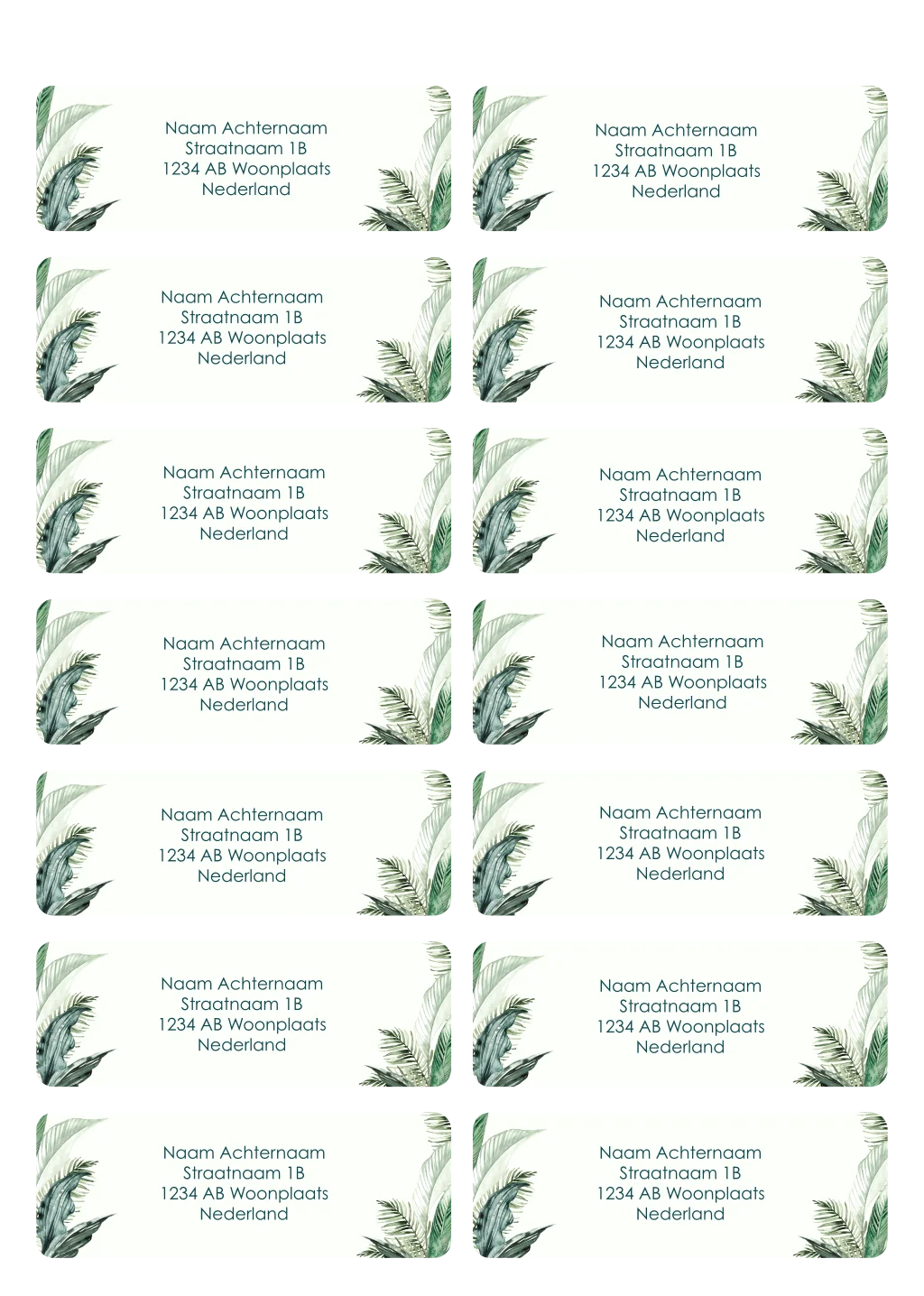 Adresstickers geboorte in botanische stijl