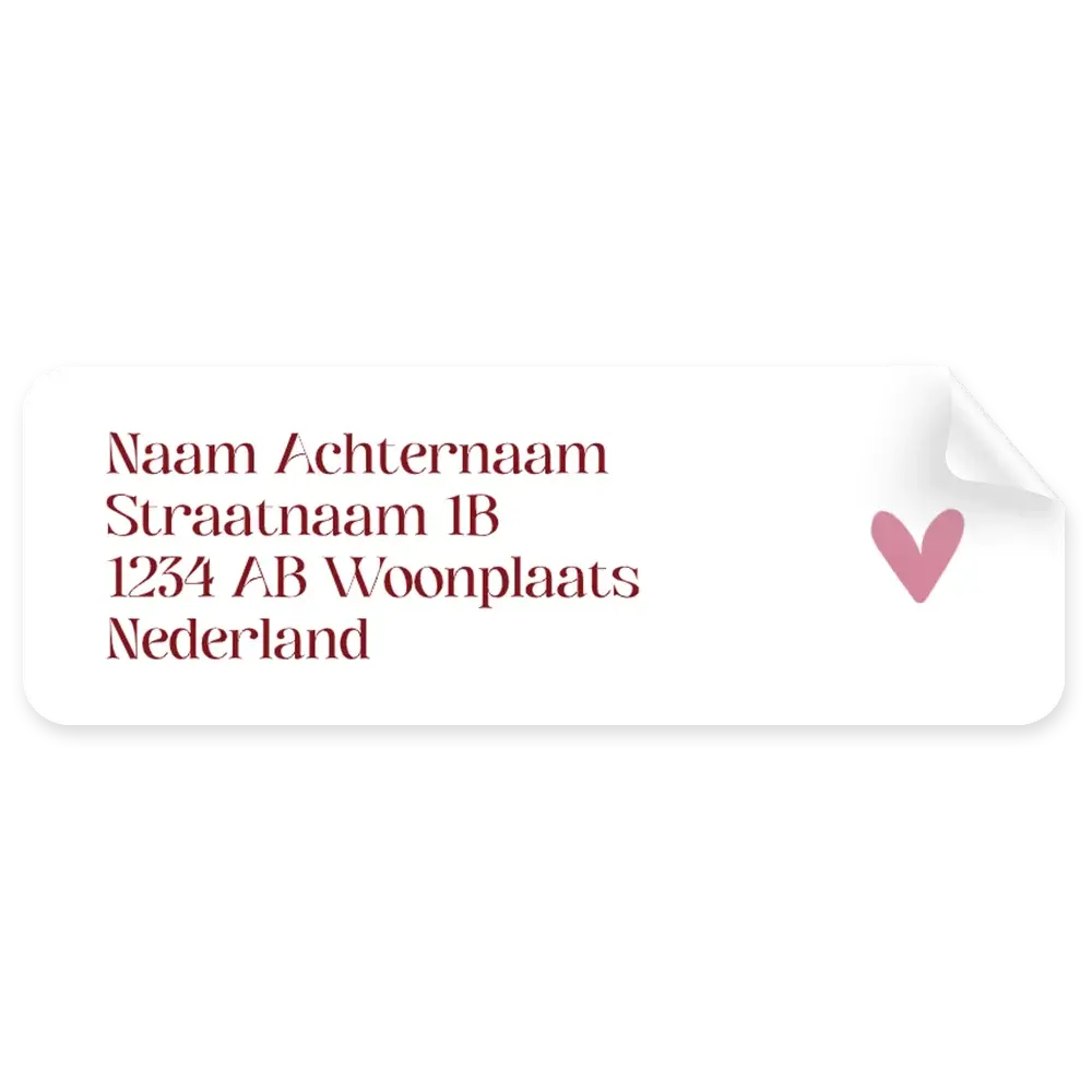 Je kunt deze adresstickers voor op de envelop met roze hartje zelf naar wens bewerken in onze editor. Je past gemakkelijk zelf de kleuren of lettertypes aan.