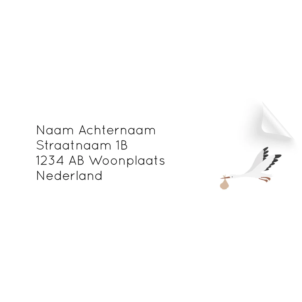 Hoe schattig zijn deze adresstickers met ooievaar? Je kunt de stickers zelf naar wens aanpassen in onze editor.