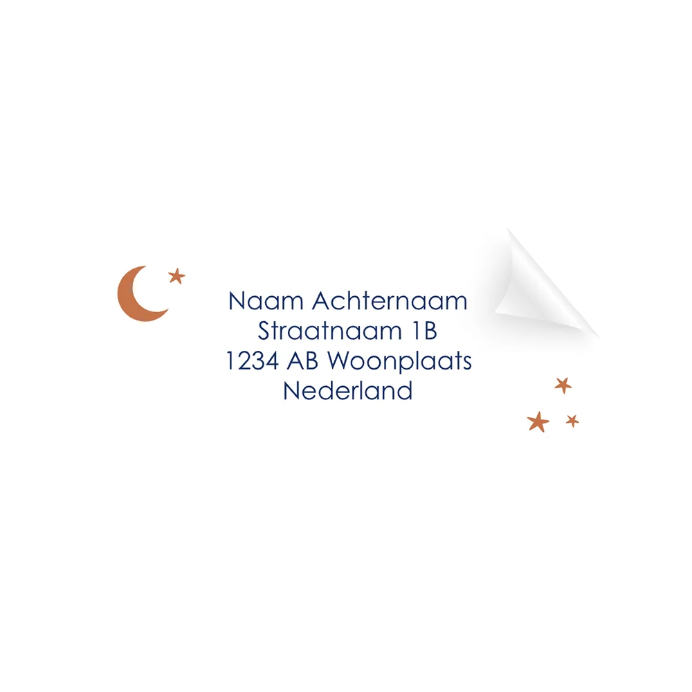Adresstickers geboorte met roestbruine maan en sterretjes