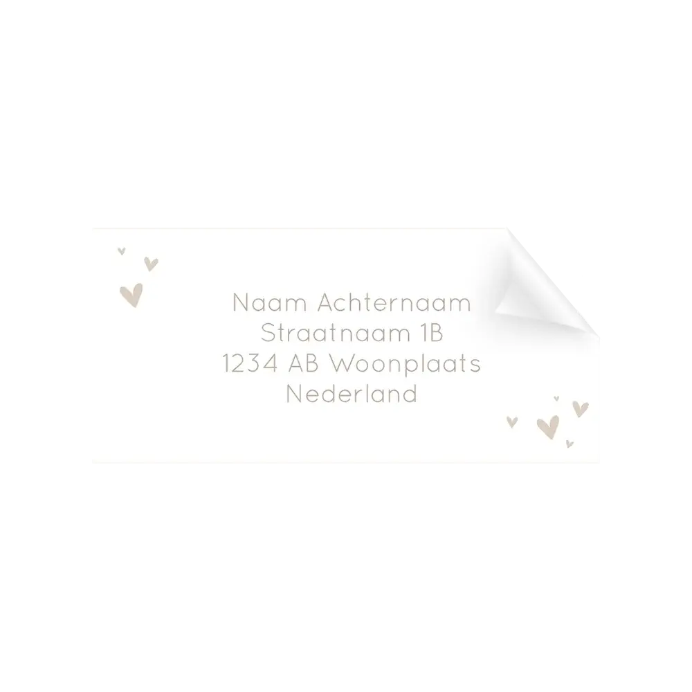 Adresstickers geboortekaartje met hartjes in neutrale kleur