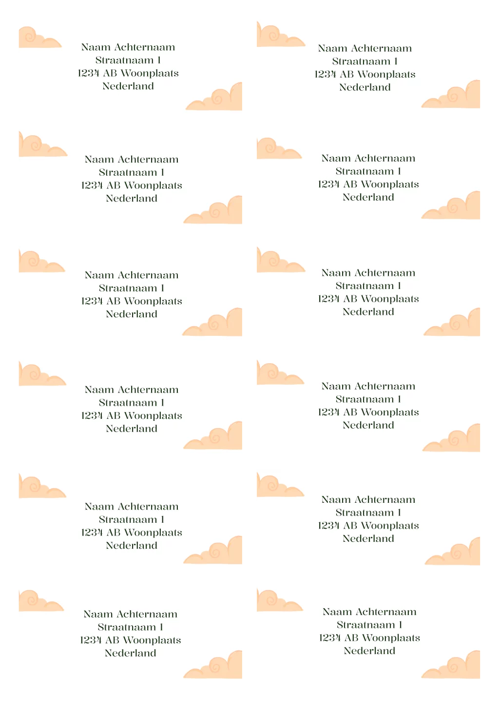 Maak je geboortekaartje helemaal af met deze adresstickers voor op de envelop! Je kunt de adresstickers gemakkelijk zelf aanpassen in de editor.