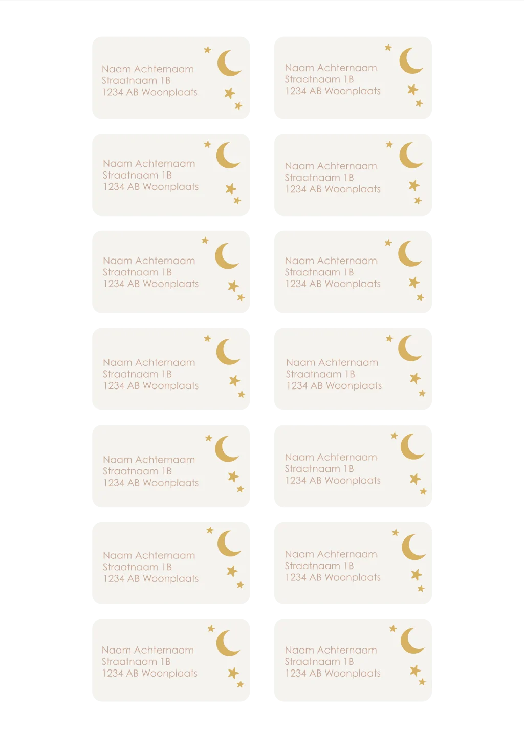Maak je geboortekaartje helemaal af met deze adresstickers voor op de envelop! Je kunt de adresstickers gemakkelijk zelf aanpassen in de editor.