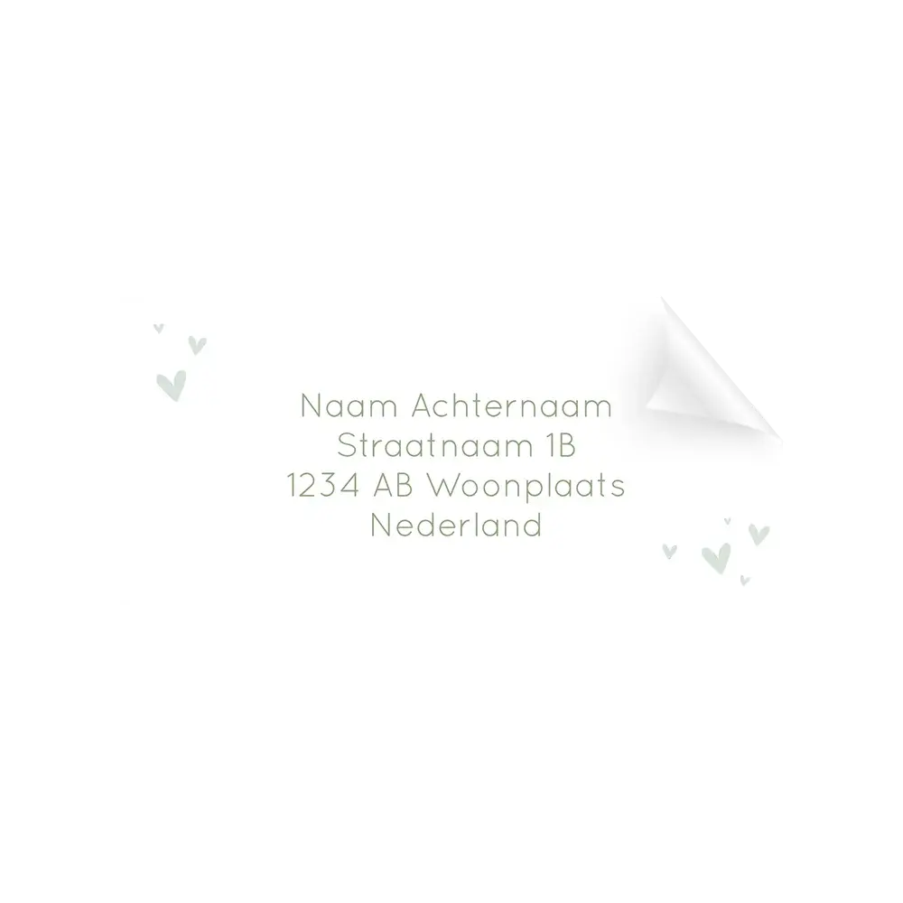 Je kunt deze adresstickers voor op de envelop met schattige hartjes zelf naar wens bewerken in onze editor. Je past gemakkelijk zelf de kleuren of lettertypes aan.