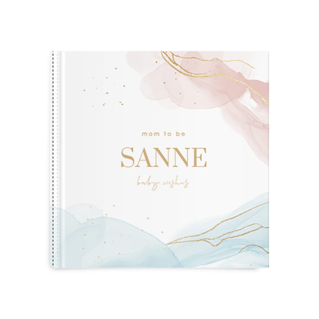 Laat je babyshower gasten een lief berichtje schrijven in dit mooie babyshower gastenboek! Je kunt de voor- en achterzijde geheel naar smaak bewerken in de online editor.
