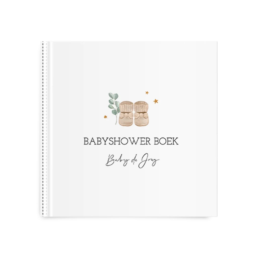 Laat je babyshower gasten een lief berichtje schrijven in dit mooie babyshower gastenboek! Je kunt de voor- en achterzijde geheel naar smaak bewerken in de online editor.