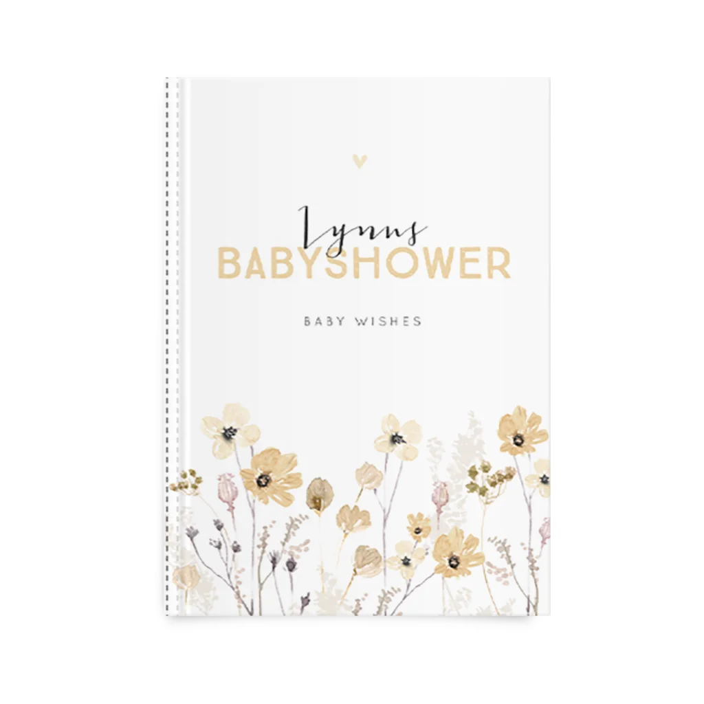 Babyshower boek met gele veldbloemen