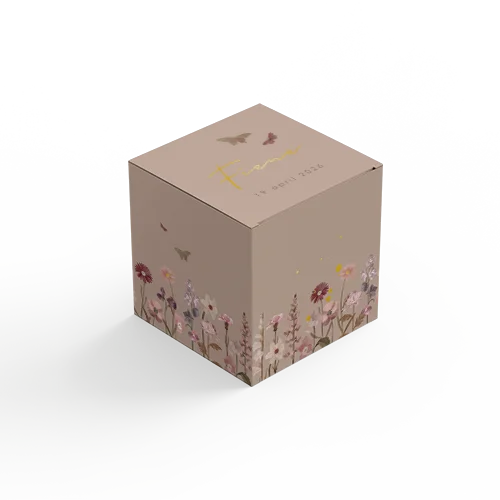 Een kubusdoosje in stijl van je geboortekaartje als verpakking van de doopsuikers. Hoe leuk is dat? Deze doosjes zijn 5 cm hoog, breed en diep én do-it-yourself: ze worden namelijk ongevouwen geleverd.