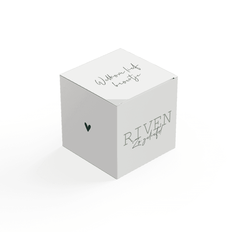 Een kubusdoosje in stijl van jullie geboortekaartje als verpakking van de doopsuikers. Hoe schattig is dat? Deze doosjes zijn 5 cm hoog, breed en diep én do-it-yourself: ze worden namelijk ongevouwen geleverd.