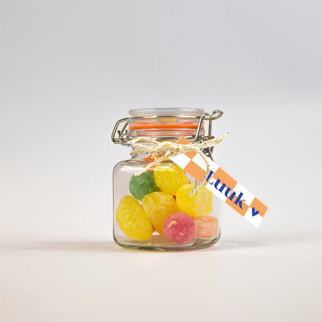 Super schattig, dit color blocking doopsuiker label! Thuis hoef je deze labeltjes alleen nog aan de doopsuiker te bevestigen met passend bevestigingsmateriaal.